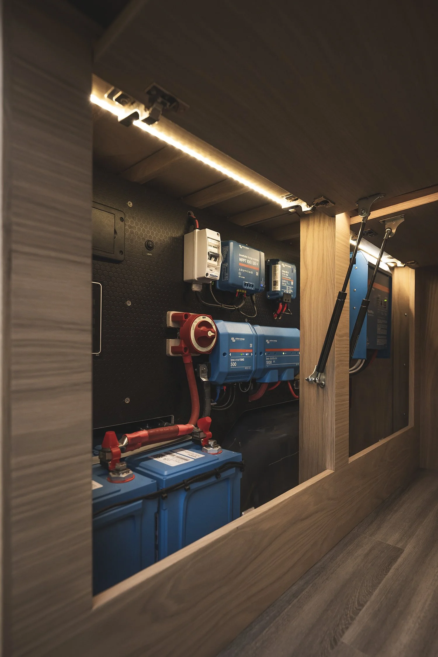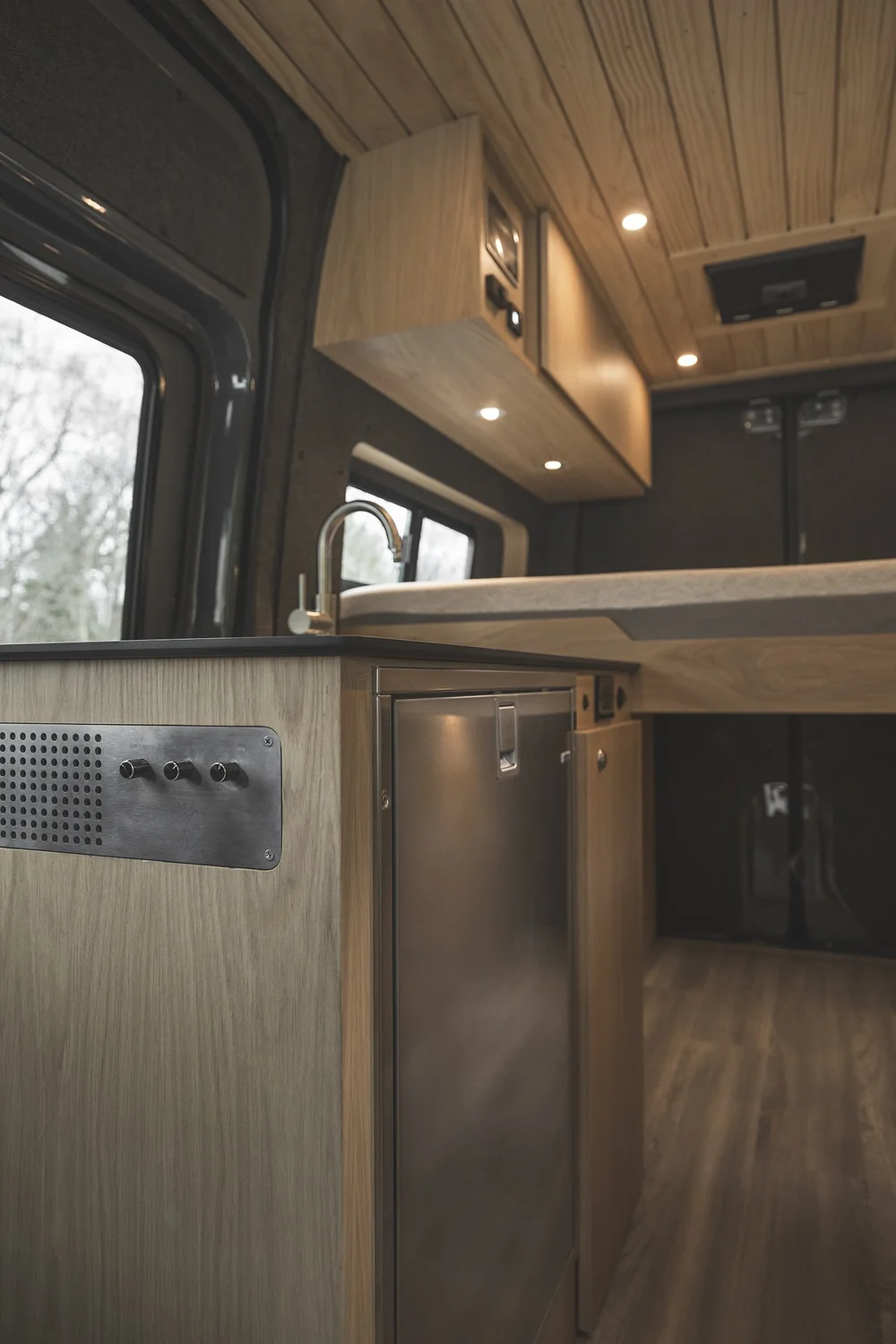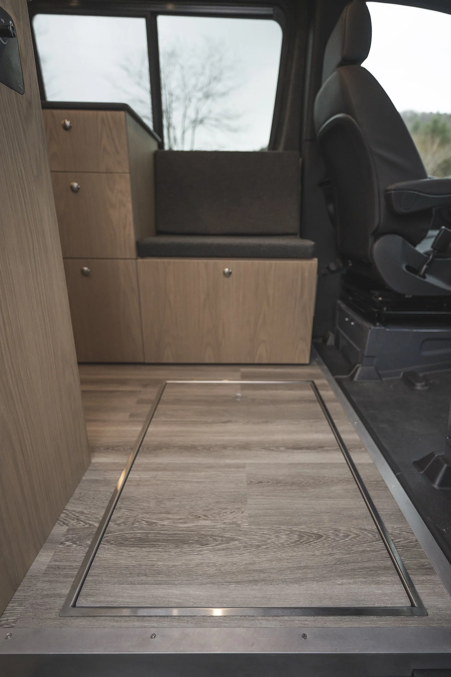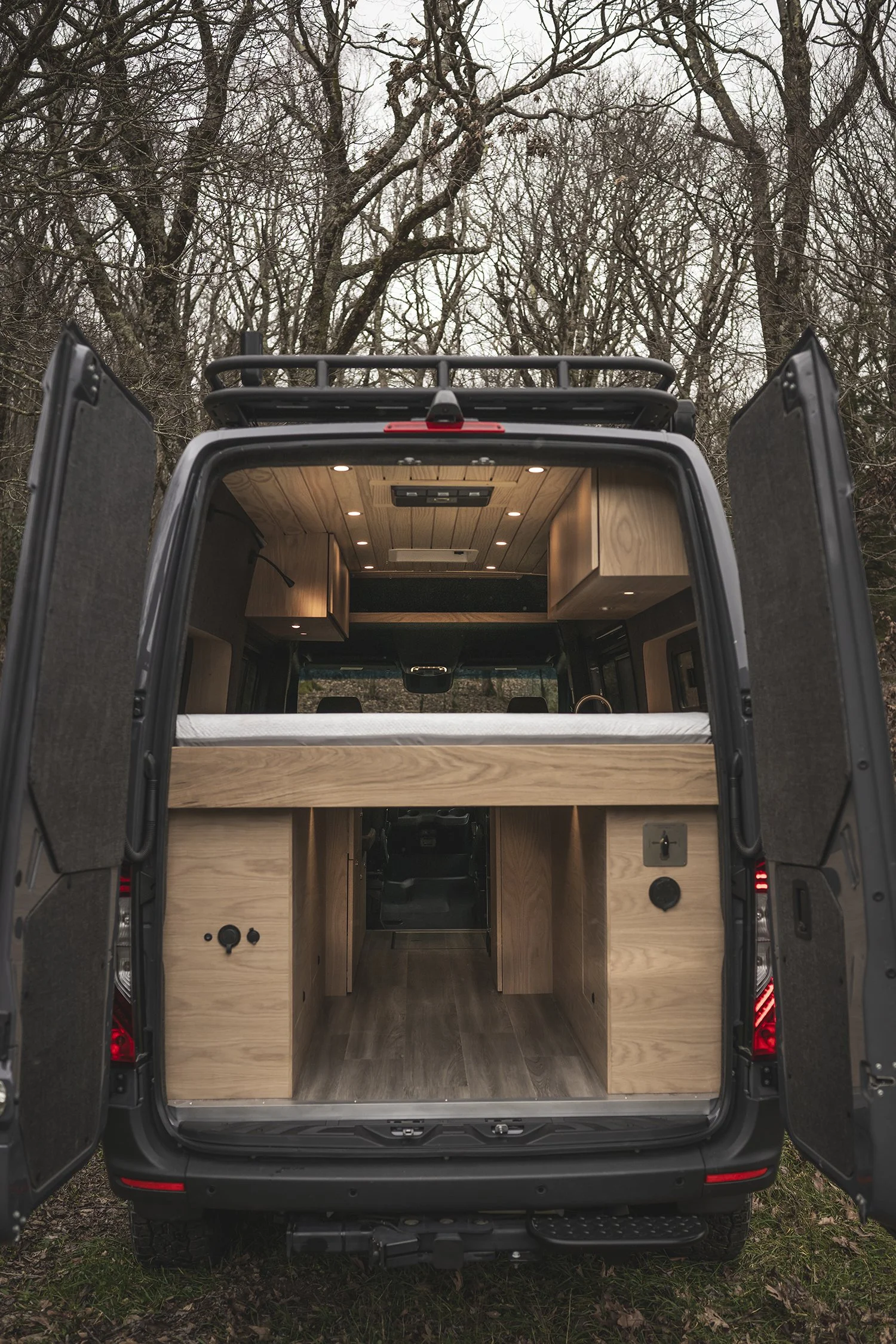Built for the toughest terrain, it boasts upgraded suspension, all-terrain tires, aftermarket wheels, and a Baja Designs LP9 lighting system to light your way. Inside, custom white oak cabinetry offers a stylish and functional living space, while a hidden shower and toilet add extra convenience for long-term travel. Whether you’re exploring remote locations or living off the grid, this van is ready to take you wherever the road (or no road) leads.