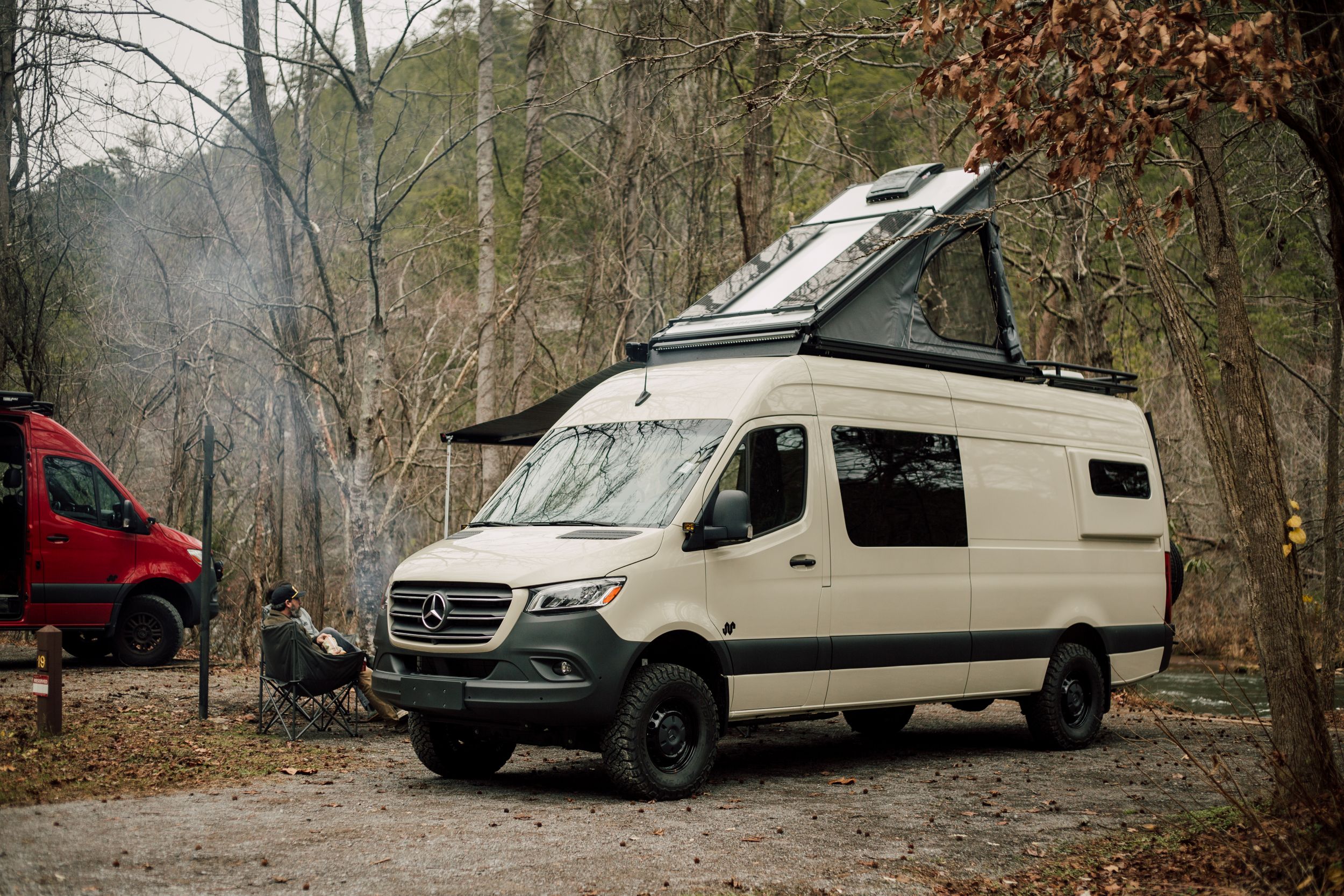 This 2024 Mercedes Sprinter 170 AWD seats and sleeps 5. The Super Pacific CloudCap offers the same space flexibility as other pop-tops without compromising the safety and integrity of your van.